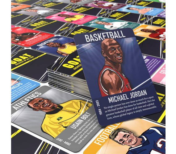 "Who’s the GOAT?” Meaning: “Who’s the Greatest Of All Time?” is the ultimate sporting debate. And the inspiration for GOAT: the speedy spoons card game.